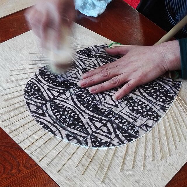 元気いっぱいのアフリカンプリントを使用した、南房州で受け継がれる千葉県の伝統工芸品の「房州うちわ」です。