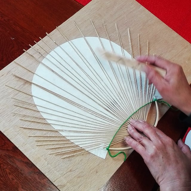 房州うちわとは日本三大うちわの一つとされ、材料の女竹(めだけ)を細く割いた骨と一体となった丸い柄が特徴です。21もの手作業の工程を経て一枚のうちわが完成します。