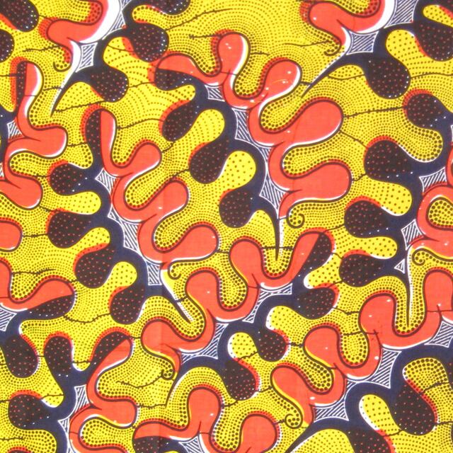 この布は製法からワックスプリントと呼ばれています。鮮やかな色や大胆な柄は、個性的なおしゃれにぴったり。インテリアや手作り雑貨など、ぜひ普段の暮らしに取り入れてみてください。