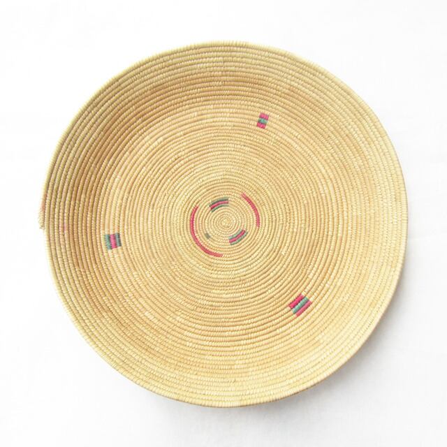 フラニ族によって作られたラフィアヤシの平たいかごです。西アフリカの多くの国に分布するフラニ族、遊牧民を起源とする彼らは今でも多くの人が牧畜をしています。
