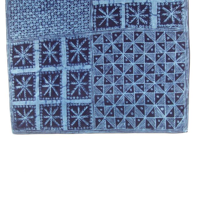 アディレ(Adire) はナイジェリアのヨルバ族伝統の藍染布です。様々な技法のなかで、特に美しいのがこのアディレ•エレコです。現在はごくわずかしか生産されておらず、とても貴重な布です。